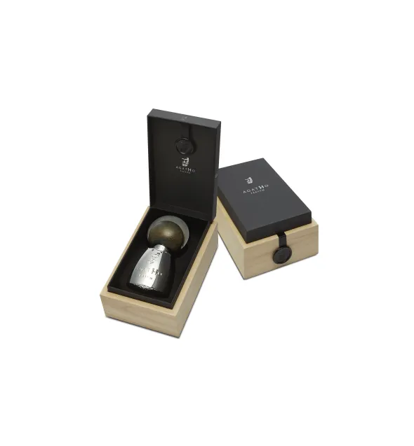 It is presented in a distinctive soft silk-lined wooden box, complete with a stunning fine porcelain cap, which has been designed and manufactured according to Italian tradition and artistic research.